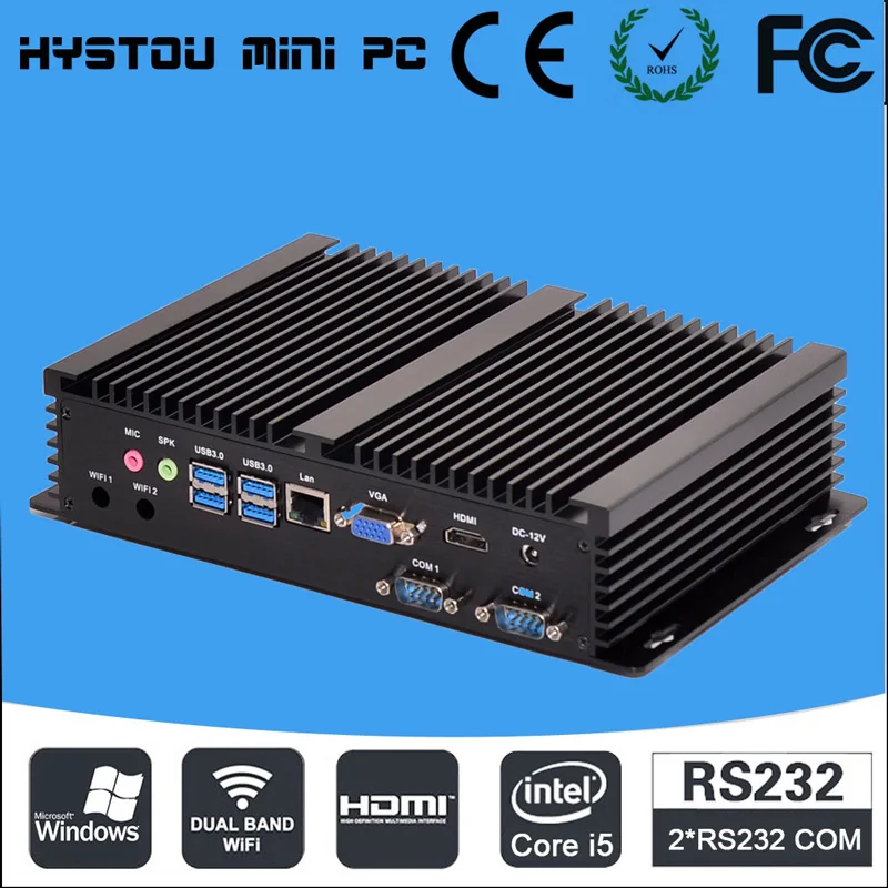 Безвентиляторный промышленный окна 10 прочный ITX алюминиевый чехол процессор Intel i5 4200u HTPC TV RS232 wi-fi USB VGA тонкий клиент Описание